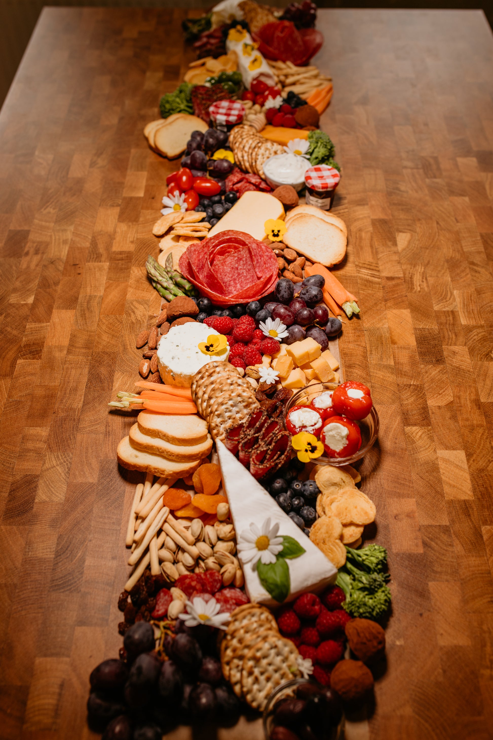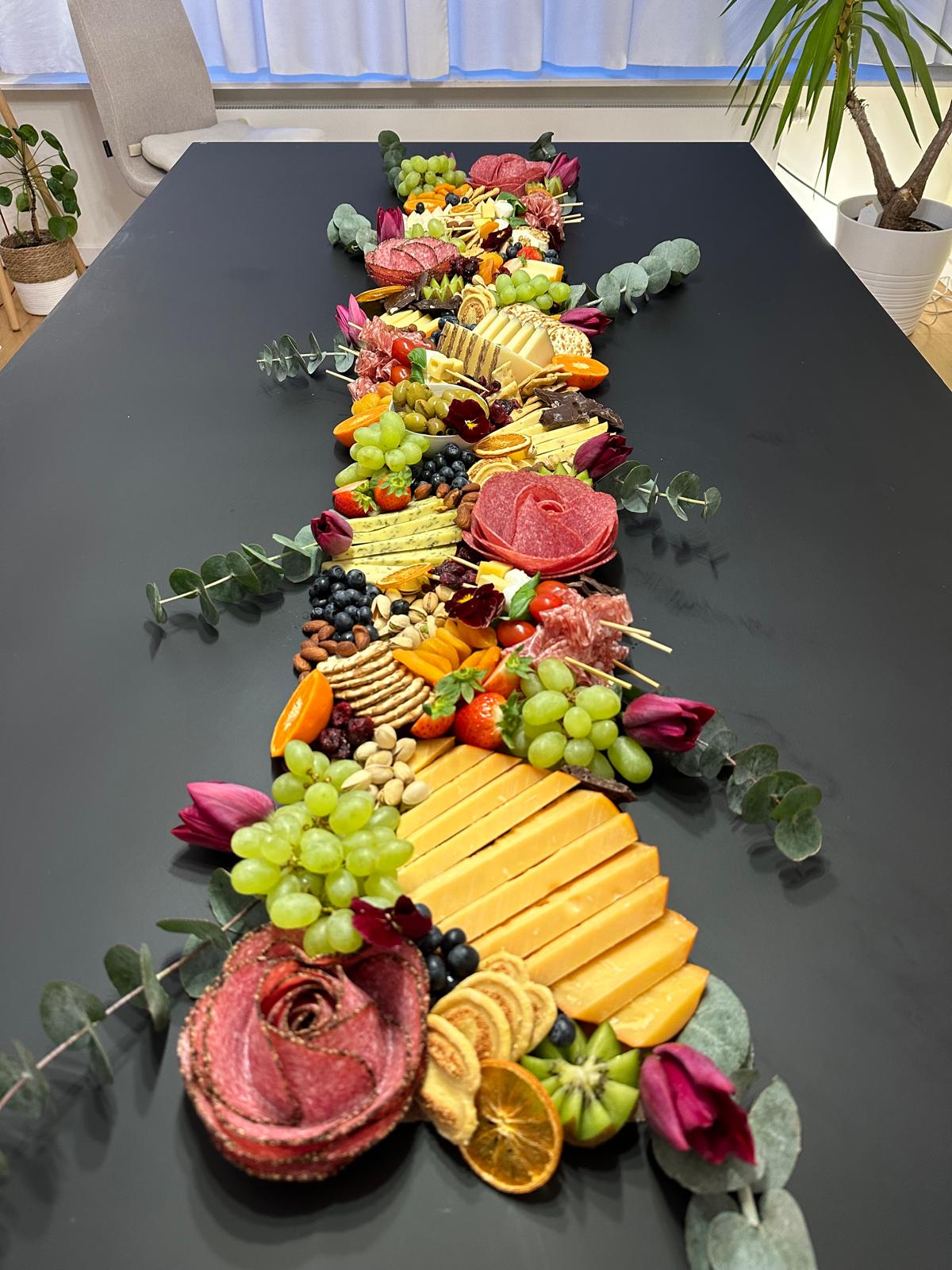 Beautiful and delicious grazing runner to make the prettiest centerpiece for your next event. Our grazing runners can be styled many different ways, such as smaller round centerpieces on multiple tables, one long table, two smaller tables, two different height tables etc. Have an idea? Just ask and we can create a bespoke quote!
